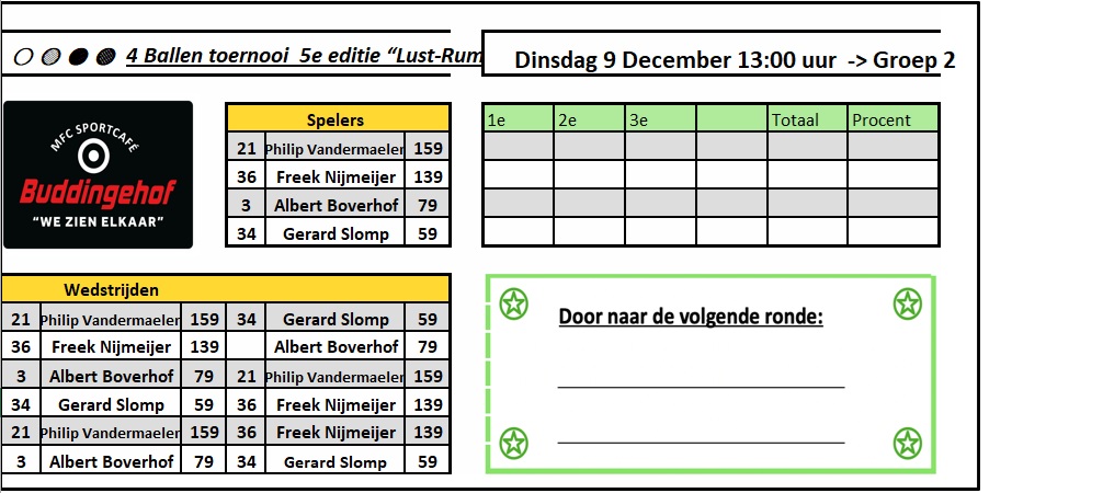 Dinsdag 9 December 19:00 uur -> Groep 4