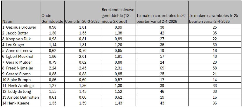 Nieuwe gemiddelden per 2-4-2026
