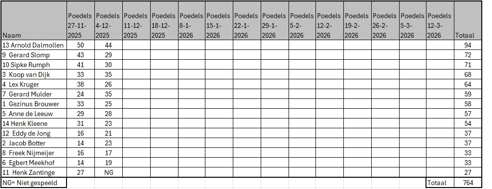 Dinsdag 9 December 13:00 uur -> Groep 1